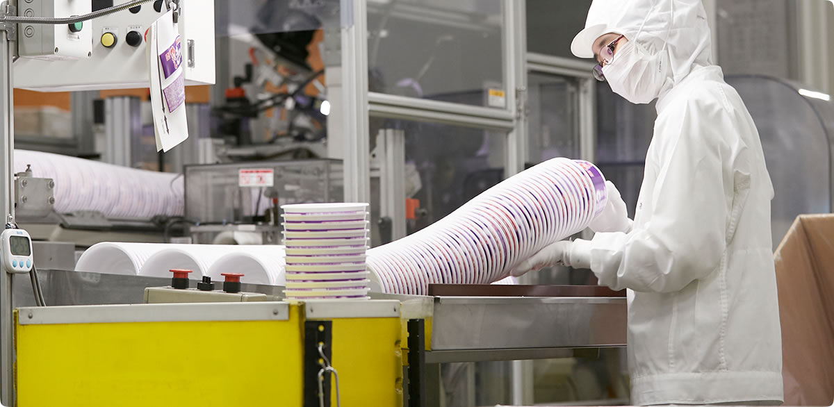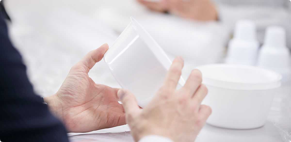 東名化学工業が生産しているのは、お子様からご年配の方まで誰もが手に取り、飲食にご利用いただくための容器。