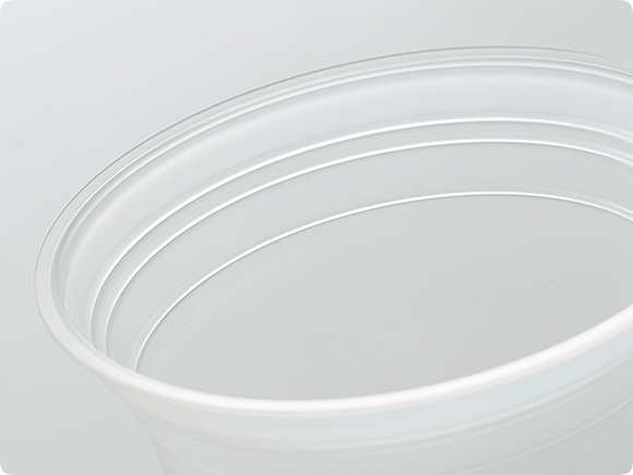 原料の選定や生産方法の再検討の同時進行で、品質向上のためにカップ本体の形状を見直し、品質の管理体制も整えました。そして蓋についても生産性を上げるべく、生産工程・作業工程の見直しを行いました。